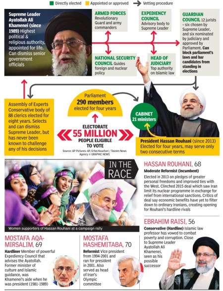 Iran’s 12th Presidential Election will be held on May 19, where moderate incumbent Hassan Rouhani is likely to face a strong challenge from hardline cleric Ebrahim Raisi. Although Iran’s president stays subordinate to Ayatollah Ali Khamenei, who as Supreme Leader has the final say over the West Asian country’s foreign and domestic matters, presidents still wield significant influence.