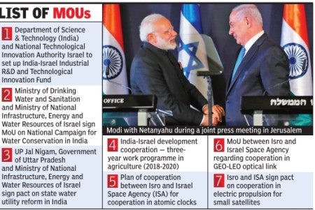 In the presence of Modi and Netanyahu, top officials of the two countries signed seven deals, including pacts on agriculture and water management, and co-operation in space. It was also agreed that India and Israel would set up a USD 40 million fund for industrial Research and Development, with both countries contributing USD 20 million each.