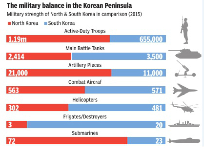 It is still not clear whether South Korea is fully prepared to bear the brunt of any war with the North. As per data published by International Institute for Strategic Studies and Nuclear Threat Initiative, South Korea’s GDP is 50 times larger than North Korea’s and Seoul spends almost five times as much as Pyongyang on defence.