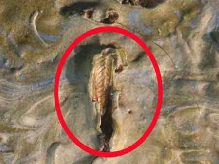 The grasshopper seen embedded in the paint. (Photo: Eva Claire Hambach/AFP/Getty Images)