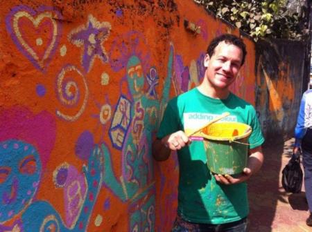 Little children were seen playing with colours on a huge piece of cloth and Joel Bergner was encouraging them. The New York-based muralist and educator decided to leave the comfort of the first world many years ago, as he visited different parts of the globe in order to create large-scale works of art with the participation of young people and communities. He arrived in Bangladesh in the last week of May after spending a couple of weeks in India.