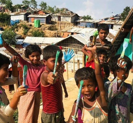 The muralist, recently blessed with a baby girl, becomes a friend of Rohingya kids. He said that Rohingya kids are like Syrian children, who love to make friends. It’s unfortunate that they have lost their loved ones and are forced to leave their motherlands. Still, they love to sing, paint and dance, added Bergner. Many of them shared their dreams with their ‘uncle’. They want to become doctors, teachers, globe-trotters and to work for freedom and peace.