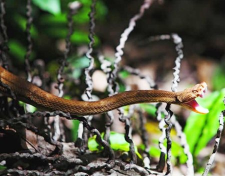 Now, thousands of snakes live there. According to herpetologists, those are Golden Lanceheads (or Bothrops insularis) – a venomous pit viper species endemic to Ilha da Queimada Grande. A recent survey has revealed that there is one Golden Lancehead per one square meter on the Brazilian island surface. Ilha da Queimada Grande is commonly known as ‘Snake Island’.