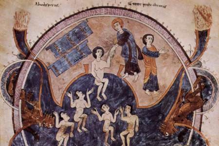 A section of an apocalypse scene from the Gerona Beatus, a 10th-century Spanish manuscript painted by Ende, a female manuscript illuminator. It is the earliest known use of lapis lazuli by a female painter