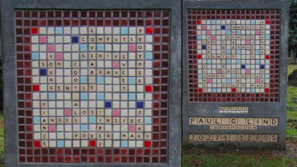 Crosswords on the grave! It shows the love of the deceased for the crossword-puzzles!