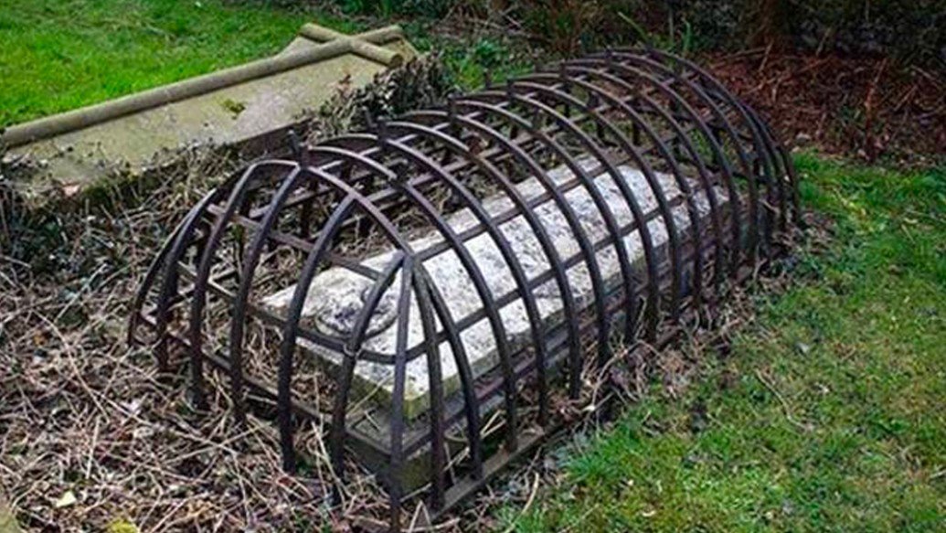 This grave is of the Victorian Era. Perhaps, it lets people be aware of the fact that the deceased had been a convict. The grave is covered with an iron cage so that the person would not be able to leave his resting place.