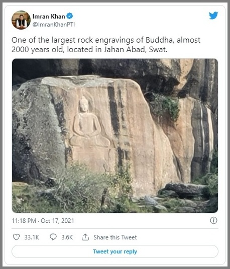 Imran Ahmed Khan Niazi, the Prime Minister of Pakistan, has praised the 7th Century rock carving in Swat Valley by calling it “one of the largest engravings of Buddha” at a time when the Buddhists are facing extinction because of unavailability of worship places, religious teaching and government patronage in his country. Later, a section of the Pakistani people trolled their PM on Twitter!