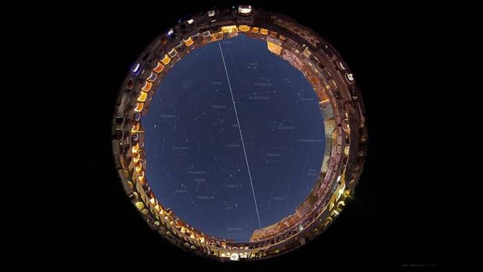 Masi claimed that astronomers shared two different passes of the ISS above the Flavian Amphitheatre, observed on December 6-7. The former was simply a record one, with the ISS reaching the zenith exactly overhead from the Colosseum; the latter happened at twilight, while the sky was still significantly bright.