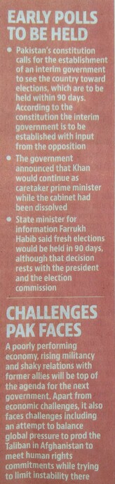 Pakistan is facing a constitutional crisis, as Prime Minister Khan called early elections on April 3 in yet another twist to the unending saga. Early on that day, the deputy speaker of the Parliament blocked the Oppositions’ No-Confidence Motion against the Government, led by Khan, on the ground that it was unconstitutional. Minutes later, Khan, who did not have numbers to survive the vote, said (in an address to the nation) that he had recommended to President Arif-ur-Rehman Alvi to dissolve the National Assembly and Legislative Assemblies in various provinces, and to call a fresh election. Khan reportedly said: “The public decides who they want in power. I have sent advice to the President to dissolve the Assemblies. I want to tell the public to get ready for elections… No corrupt forces will decide what the future of the country will be.” Later on April 4, he nominated former Chief Justice of Pakistan Gulzar Ahmed for the Office of the Caretaker Prime Minister. Thereafter, the Government issued a statement, saying: “Consequent upon the dissolution of the National Assembly, Imran Ahmed Khan Niazi ceased to hold the office with immediate effect.”