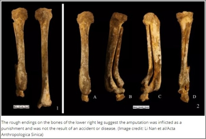 Archaeologists are of the opinion that the woman was convicted of committing some sort of crime, and had her leg amputated. They have confirmed that the lady was not suffering from diseases, pertaining to her bones. Most importantly, no medical instruments were used while amputating her leg. In other words, it was done in a crude and brutal manner. Li Nan, an Archaeologist at Peking University, has said that the researchers came to the conclusion after considering all other possibilities for how the woman might have lost her foot… due to an accident, a war injury or a surgical procedure. “After careful observation and media discussions, our research team ruled out other possibilities and agreed that punitive amputation is the best interpretation,” she stressed. Li added: “The cutting surface of her right tibia was not smooth and marked malunion (a badly-healed fracture) was observed. A surgical amputation could do much better at that time.“