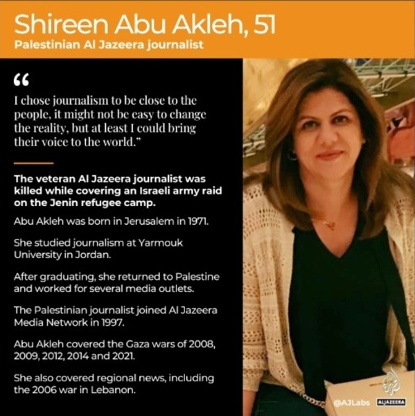 Journalists thought that at least, they were safe. They had no idea that they would have to face the bullets. The New York Times investigation recently revealed that Shireen Abu Akleh (April 3, 1971 – May 11, 2022), a Palestinian-American journalist who worked as a reporter for the Arabic-language channel Al Jazeera for 25 years, and was one of the most prominent names across West Asia for her decades of reporting in the Israeli-occupied Palestinian territories, was shot dead intentionally by Israel Elite Force in West Bank on May 11, 2022. In a report published on June 20, the US daily mentioned that no Palestinian armed men were near Abu Akleh at the time she was killed in the occupied West Bank, thus dismissing early Israeli theories blaming Palestinians for the incident.