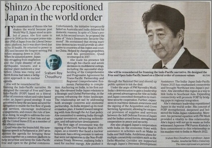 Abe was instrumental in forming the QUAD (or the Quadrilateral Security Dialogue (QSD), a strategic security dialogue between Australia, India, Japan and the US) in 2007 to reduce China’s monopoly in the Indo-Pacific. The move is considered as his greatest diplomatic success. He also realised the importance of India in Asian Politics. He always maintained cordial ties with the South Asian nation.