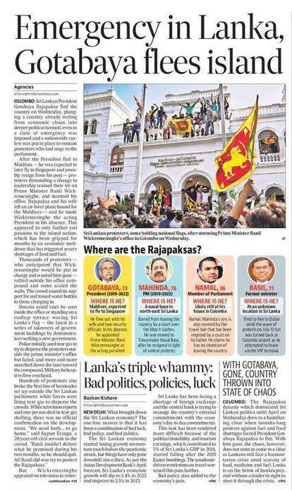 On July 14 morning, President Rajapaksa fled Colombo to avoid public outrage. Reports suggest that the President, who fled Sri Lanka with his wife, was heading to Singapore after spending a day in Male. They departed from the Maldives on Saudi Airline flight SV 788 to Singapore. According to sources close to the Rajapaksa family, the president may take shelter in Saudi Arabia. Earlier, the Sri Lankan President urged New Delhi to allow him to stay in India. However, the Government of India rejected his request, as the Narendra Modi Administration has started maintaining a distance with the Rajapaksas.