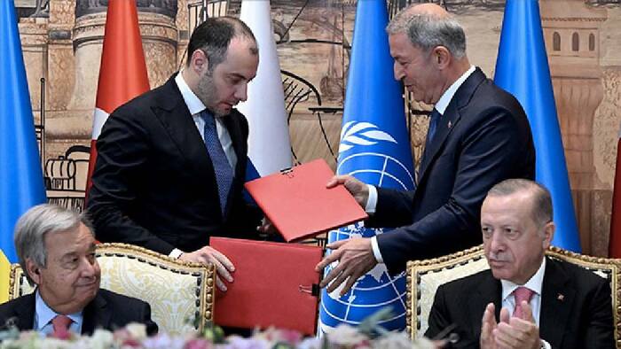 AFP reported that Russian Defence Minister Sergei Shoigu and Ukrainian Infrastructure Minister Oleksandr Kubrakov signed separate, but identical agreements with the UN and Turkish officials on reopening blocked Black Sea delivery routes. The two ministers signed separate agreements, as Ukraine refused to put their name on the same document as Russians. UN Secretary General Antonio Guterres and Turkish President Recep Tayyip Erdoğan were present there, during the event.