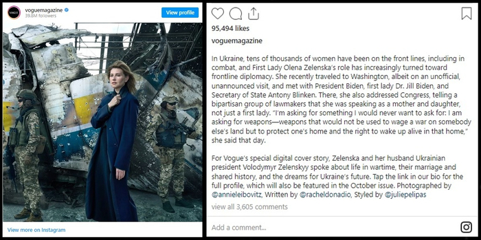 Although Vogue has posted the image of First Lady Zelenska as its latest digital cover star, calling it “Portrait of Bravery“; the image has attracted criticism from many. However, many users have called the digital cover a beautiful and powerful image. In the Vogue cover, it is seen that the Ukrainian First Lady sitting inside the Presidential Office and dressed casually in black pants and white top. She has also posed for photographs, along with her husband, Ukrainian soldiers and wreckage among other images released by Vogue on its Instagram handle.