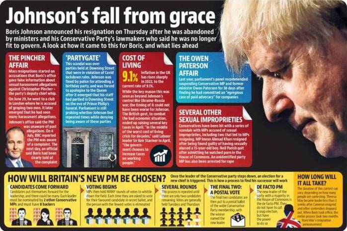 The scenario changed in December 2021. People came to know that when the entire nation was in a state of lockdown, Prime Minister Johnson organised a number of wine parties at his official residence. Thereafter, a series of allegations related to corruption against his Government surfaced. Johnson had no other option, but to tender his resignation.