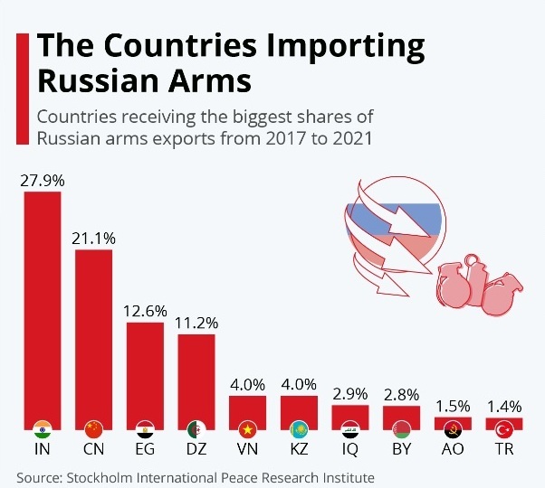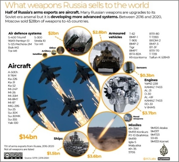 Currently, Russia, the second-largest arms exporter in the world (after the US), accounts for around 20% of global weapons sales. From 2016 to 2020, Moscow had sold weapons, worth USD 28 billion, to 45 countries. As per a report published by Al Jazeera, Russia exports nearly 90% of its weapons to 10 countries, and India is the biggest customer of the former. The South Asian nation has purchased 23% of Russia’s weapons for nearly USD 6.5 billion in the past five years, as nearly half of India’s total arms imports (49.3%) came from Russia.