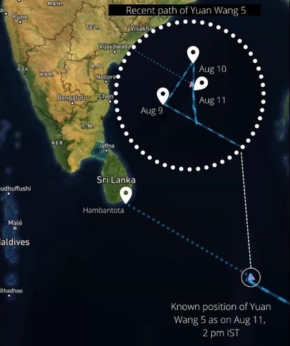 Interestingly, when India realised that China would not listen to Sri Lanka’s objections, the former asked Colombo to seek some more time before allowing the ship to enter into the Sri Lankan water. India’s main purpose was to bring its own satellites and maritime assets, and surveillance ships, into position during this time so that they could monitor the movement of the Chinese ship, and to get sufficient time to jam the Chinese radars. Some satellite images have shown that the Chinese spy ship was roaming on the Indian Ocean, as it was unable to dock at Hambantota on August 11. During that time, India started blocking the signal, covering about 2,000sqkm of area.