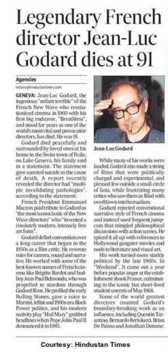 In his film Breathless (1960), the lead female character, Patricia, while interviewing an author of repute, asked him: “What is your greatest ambition in life?” The novelist replied: “To become immortal… and then die.” With this film, French New Wave master Jean-Luc Godard (December 3, 1930 – September 13, 2022), himself, became immortal. Still, he made quite a number of films, as there was no such term, called stagnation, in his dictionary. Hence, the French-Swiss film director, screenwriter, and film critic decided to constantly renew immortality.