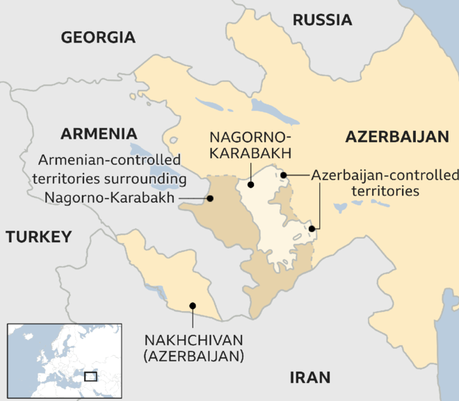 Nearly 6,500 people were killed in the war between Armenia and Azerbaijan in 2020 over the occupation of the Nagorno-Karabakh region. The region is inhabited mostly by ethnic Armenians, while seven surrounding districts were inhabited mostly by Azerbaijanis until their expulsion during the First Nagorno-Karabakh War. Some of these territories are de facto controlled, and some are claimed by the breakaway Republic of Artsakh; although they have been internationally recognised as part of Azerbaijan. The Kremlin had mediated a ceasefire in 2020. This time, it is not possible for Russian President Vladimir Putin to play that role, as he is busy with the Ukraine crisis.