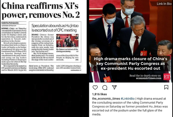 The most dramatic moment of the seven-day Party Congress was the forcible lead out of Hu Jintao, Xi’s predecessor as party leader and President, of the closing ceremony. The frail-looking 79-year-old former President of China was reluctant to leave the front row, where he was sitting next to Xi. The Chinese State media reported that Hu had been removed because he was feeling unwell. However, Xi was seen unfazed as Hu was lifted from his chair and escorted out. The incident fuelled frenzied speculation among observers and analysts as to whether there were political factors at play. Later, the Chinese censors scrubbed references to Hu from the internet after he was removed from the Party Congress. Interestingly, Hu Chunhua, one of Hu’s protégés, was tipped by some to be named to the Standing Committee on October 23. However, President Xi sidelined him.