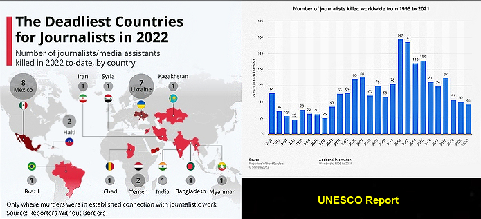 Audrey Azoulay, the Director-General of UNESCO, stressed: “On the 10th anniversary of the UN Plan of Action on the Safety of Journalists, I call on Governments and all stakeholders to redouble their efforts to end impunity for crimes against journalists.” She also said: “Freedom of Expression cannot be protected when there is such a staggering number of unresolved cases. It has a chilling effect on investigative reporting, a field of journalism which is vital to the health of any Democracy.” According to Azoulay, convictions have increased by just 9% over the past decade.