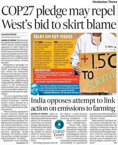Fortunately, the Global Community has expressed serious concern about Global Warming, and the Egypt Treaty is a reflection of that. That is why the International Community has decided to limit Global Warming to below two degrees Celsius by 2070. However, it would not be easy to measure the extent of damage and to deal with it. The world may face an acute food crisis while tackling Global Warming. Hence, the global political leadership seems to be worried. For now, the Egypt Deal should be considered as a major step forward in the fight against Global Warming, as one of the major obstacles has been the acceptance of responsibility by the Developed World.