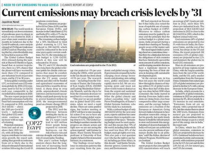 During the recent COP27 Summit, the Developing World made it clear that the Developed World would have to pay the price for destroying nature. Representatives of the Developing Nations argued that environment-friendly technology was beyond the reach of their countries, given their relative poverty. Hence, the Developed World should not force these countries to stop using traditional technologies, such as the coal-based power generation. Representatives of other countries reportedly urged India to reduce its consumption of coal during the COP27 Summit. They claimed that the US and India were the two countries which played an important role in heating up the environment in the last one year. It may be noted that India has not clarified its position on carbon emissions for many years. Finally (during the Birmingham Summit) in 2021, India announced that it would try to achieve a net-zero emissions target by 2070.