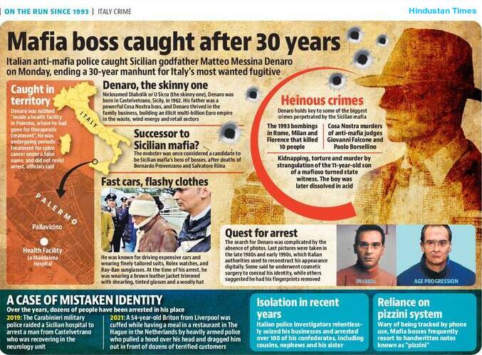 In 2002, an Italian court had sentenced Denaro, the boss of notorious Cosa Nostra organised crime syndicate who has been accused of hundreds of murders, kidnappings, robberies and attacks, to life imprisonment in absentia. However, the Police failed to catch him, as they did not have any photograph of Denaro. In fact, he had been missing since 1993.