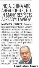 Speaking at an event in Massawa (a port city of Eritrea in eastern Africa) in the last week of January 2023, Russian Foreign Minister Sergey Viktorovich Lavrov said that the two neighbouring Asian nations enjoyed more financial and political influence than Washington DC and Brussels. He took a sharp dig at the US, stressing that the Kremlin wanted to establish a multi-polar world, in spite of the West’s desperate attempt to reverse this process.