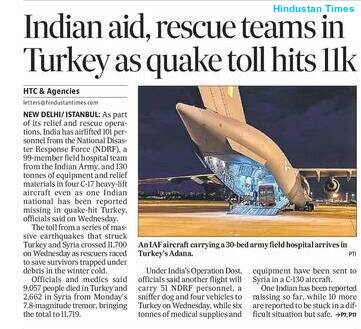 A devastating earthquake, with its magnitude measuring 7.8 in the Richter Scale, followed by three strong tremors, rocked wide swaths of Turkey and Syria at 4:17am (local time) on February 6, 2023, killing more than 37,000 people (as on February 14). According to the US Geological Survey (USGS), the epicentre of the 7.8-magnitude quake was 23km east of Nurdagi in Gaziantep, at a depth of 24.1km. The earthquake devastated neighbouring Syria, as well. Between 11 and 15 minutes after the first tremor, another earthquake took place near the Turkey-Syria border, and it was followed by the third and fourth quakes. As the earthquake triggered the collapse of several multi-storeyed buildings, thousands of people were trapped under the rubble. It may be noted that Turkey experienced strong earthquakes quite a number of times, in the past. Geologists are of the opinion that the geographical location of the country is one of the reasons.