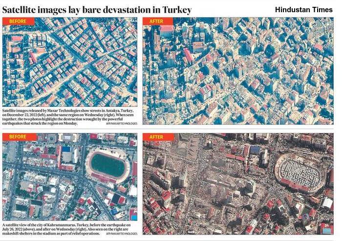 Geologists have said that large earthquakes are caused by huge collisions along a fault line, which is the meeting point of two or more Tectonic plates. However, moderate and mild earthquakes are caused by any movement along the centre of Tectonic plates. As far as Turkey’s geographical position is concerned, it is situated in the middle of three Tectonic plates. Although most of Turkey lies on the Anatolian plate, the northern part of the country sits on the Eurasian Tectonic plate, the southern part on the African Tectonic plate and the eastern part lies on the Arabian Tectonic plate. Hence, two major fault lines – East Anatolian and North Anatolian – have been created in that region. These two fault lines are highly prone to vibration. When the Arabian plate moves northward to the Eurasian plate, pressure increases on the Anatolian plate, and pushes it westward to the Aegean Sea. The February 6 earthquake in Turkey took place on the south-western edge of the East Anatolian fault line. While the epicentre of the first quake was 18km below the surface, the second was at a depth of 10km.