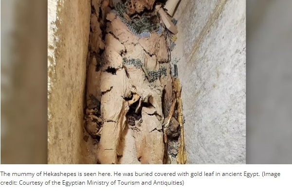 Archaeologists have claimed that the mummy is about 4,300-year-old. A team of archaeologists discovered the mummy in January 2023, while excavating a stone-built burial site in Saqqara, 30km south of modern-day Cairo. They found the mummy inside a leaf-shaped box made of gold. The mummuy was kept about 15mt beneath the ground.