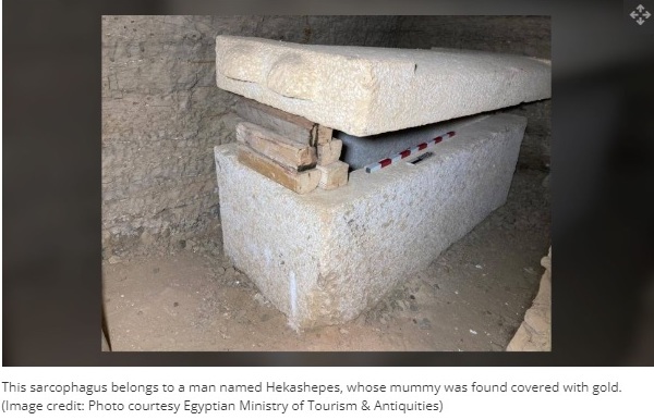 Archaeologists have claimed that the mummy is about 4,300-year-old. A team of archaeologists discovered the mummy in January 2023, while excavating a stone-built burial site in Saqqara, 30km south of modern-day Cairo. They found the mummy inside a leaf-shaped box made of gold. The mummuy was kept about 15mt beneath the ground.