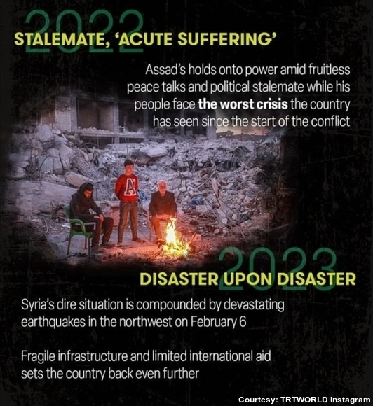 On the 12th anniversary of the revolution, the UN called for durable solution to end the war in Syria. Geir Pedersen, the UN Special Envoy to Damascus, said: “The situation in Syria is untenable and to carry on in the same manner, defies humanity and logic.” He also said that the challenges Syria was facing after the deadly February 6 earthquakes “were a stark reminder that the status quo is unsustainable and indefensible”. It may be noted that a 7.8-magnitude earthquake rocked northern Syria and southern Turkey on February 6, 2023, killing more than 50,000 people in the two nighbouring countries, apart from causing widespread devastation.