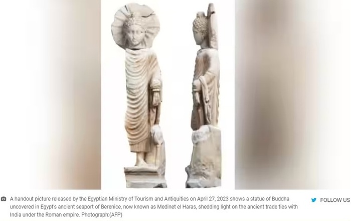 Members of a Polish-US mission discovered the statue in the ancient Egyptian port city of Berenice on the Red Sea in the last week of April 2023. Berenice is situated about 900km south of Cairo and nearly 3,800km west of Khambat, the ancient Indian port city in the present-day Gujarat Province. According to the researchers, the statue has revealed that Buddhist traditions of India left their trail of ascetic uniqueness in ancient Egypt. The Antiquities Ministry of Egypt issued a statement on April 26, 2023, saying that researchers found the statue dates back to “the Roman Era while digging at the ancient temple in Berenice“.