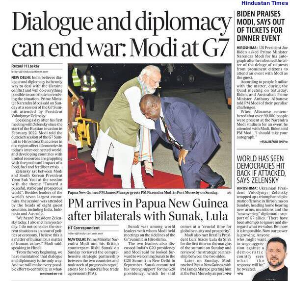 Prime Minister of India Narendra Modi held a one-to-one meeting with Ukrainian President Volodymyr Oleksandrovych Zelenskyy on May 20, 2023 in Japan, for the first time since the beginning of the Russia-Ukraine War on February 24, 2022. On the side-lines of the G-7 meeting in Hiroshima, the two leaders held talks for half an hour. During their meeting, Prime Minister Modi assured the Ukrainian President that he would do “everything necessary” to stop the war.