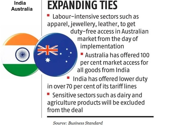 The ECTA deal holds strategic significance as both the countries distance themselves from China. Integrating Australia with India into the Indo-Pacific Region will strengthen their partnership and provide opportunities to diversify exports, promote free trade, and increase connectivity and stability. The prospects of the bilateral FTA with India are promising – especially in the context of Australia’s Indian Economic Strategy (IES) until 2035 and India’s Australia Economic Strategy, which identify potential opportunities and priorities.