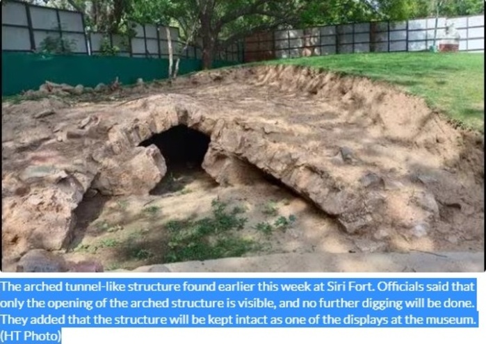 Meanwhile, Praveen Singh, the Superintending Archaeologist (Delhi Circle) of the ASI, stated: “We were creating a 4mt-wide path from the front gate to the main road during which this arch-like structure emerged. The museum upgradation work is going on under which more replicas will be added to the museum.” He added: “This was not a formal excavation site, but a chance finding. All such structures in the vicinity of Siri Fort are from the times of the Khilji Dynasty that ruled Delhi during the13th and 14th Century. We have now exposed about 5-6ft of the structure and will keep it as a display for the children to show how such structures are discovered during excavation.” Speaking at a media conference, Singh revealed that the tunnel-like structure is on a mound that is about 1mt above the ground.