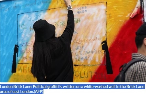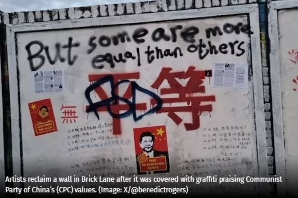 London’s Brick Lane is famous for its street art. However, one wall of this area recently turned into a battlefield, as it was covered with slogans praising the ideology of Communist Party of China (CPC). Videos posted widely on social media showed a group of people painting big red Chinese characters on a white background. They composed the “core socialist values” (first expressed by Xi’s predecessor Hu Jintao) with 12 two-character words, which are the most common political slogans of the Administration of Chinese President Xi Jinping. Videos suggest that Chinese students, studying in the UK, spray-painted the wall with 24 large red characters that read “prosperity, democracy, civilisation, harmony, freedom, equality, justice, rule of law, patriotism, dedication, integrity and friendliness”. Such political propaganda in the form of red block characters on a white wall is common in China. However, Chinese graffiti have been painted in the British capital in a rare first.