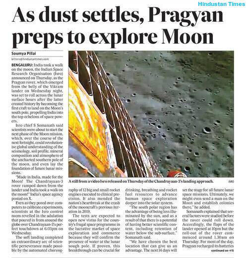 NASA Chief Clarence William Nelson and European Space Agency (ESA) Chief Josef Aschbacher congratulated their ISRO counterpart Sreedhara Panicker Somanath for India’s historic achievement, stressing that the current Indian mission would support future, manned lunar missions. Their message has made it clear that India is not a country to be ignored anymore as far as space research is concerned. India has become the fourth country (after Russia, the US and China) to land a vehicle on the Moon, and the only nation to do so at the lunar South Pole.