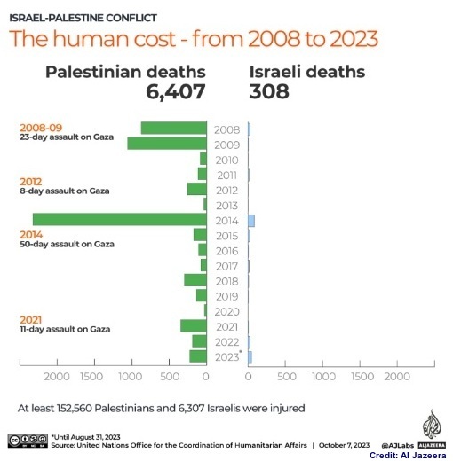 Hamas, which rules Gaza, is continuing with its activities. A media outlet controlled by the Palestinian outfit reported on October 9 that more weapons and troops were being sent to Israeli regions held by Hamas. The Hamas-linked media further reported that the son of Nizar Awadallah, a senior political official of the Hamas, had been killed. However, the Palestinian group has not reported any senior members being captured, killed or wounded. Hamas confirmed that the Israeli Forces killed at least 413 Palestinians, including 20 children and six women, in Gaza in the first three days of the ongoing conflict, and more than 2,000 people received serious injuries. Most of them, who lost their lives, were residents of the Gaza Strip. Meanwhile, a UN agency has claimed that more than 20,000 people have taken refuge in schools run by the world body.