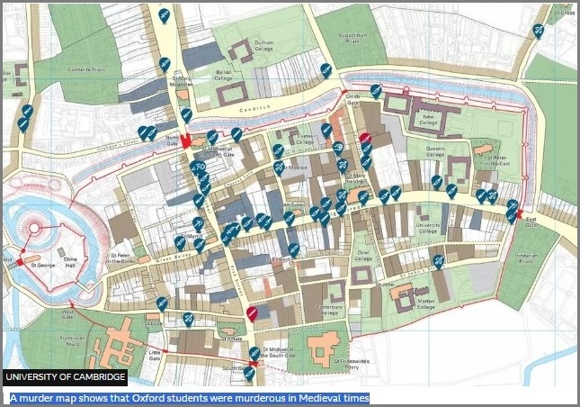 Manuel Eisner, the Wolfson Professor of Criminology at the University of Cambridge and Deputy Director of the Cambridge Institute of Criminology, led the team of researchers who created the murder map. He told the BBC that Oxford had a “deadly mix of conditions” which contributed to the high homicide rate. Professor Eisner stressed that the “combination of young male students and alcohol was a powder keg for violence“. “Oxford students were all male and typically aged between 14 and 21, the peak for violence and risk-taking,” he explained. The BBC quoted Professor Eisner as saying: “Circumstances that frequently led to violence will be familiar to us today – such as young men with group affiliations pursuing sex and alcohol during periods of leisure on the weekends.” He added: “Weapons were never far away, and male honour had to be protected.“