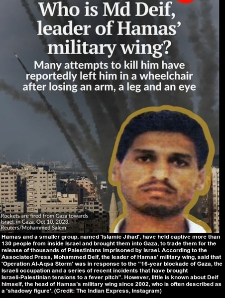 Deif somehow managed to survive an Israeli air strike 20 years ago. However, he lost an eye, an arm and a leg. The air strike claimed the lives of own brother and two other members of his family. Israel has reportedly made at least seven attempts to assassinate Deif, but failed to do so each and every time. The Israeli Defence Forces (IDF) raided a house in 2014 in an attempt to eliminate Deif. Although his wife and two children perished in the attack, Deif survived. Immediately after the Hamas Movement shocked Israel by entering Israeli territory and launching rocket attacks on the West Asian nation on October 7 morning, the Supreme Military Commander of al-Qassam Brigades stated that Gaza has been under siege for 16 years, and that Israel would have to pay a heavy price.