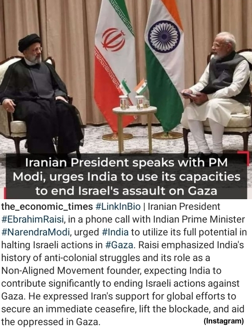 Interestingly, President Raisi raised the issues of India’s Freedom Struggle against (British) colonialism and its leadership in the Non-Aligned Movement (NAM), stressing that New Delhi should play a similar role in an attempt to restore peace in West Asia. Then, he told Prime Minister Modi that India should use all its capacities to stop the atrocities of Jews against the oppressed Palestinian people.