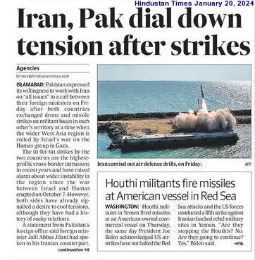 It may be noted that Iran launched missile attacks on a secret base of the Israeli spy agency Mossad in Iraq’s Kurdistan Region and also in Syria on January 15 before targeting the Jaish ul-Adl base in Pakistan. Iranian Foreign Minister Hossein Amir-Abdollahian admitted that Tehran’s only aim was to destroy the bases of the militant outfit, and the Elite Revolutionary Guards of his country destroyed two bases of the Jaish. Incidentally, Indian External Affairs Minister Dr Subrahmanyam Jaishankar visited the Islamic Republic just a day before Iran attacked the Jaish ul-Adl bases in Pakistan.