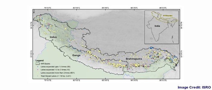 The size of one in four lakes larger than 10 hectares in the Himalayan region has been increasing since 1984. Now, the situation is getting worse. The ISRO scientists have warned that the glacial water may overflow both sides of these lakes, triggering the risk of flooding. After monitoring satellite maps of the Himalayan region for a long-term, scientists have found that melting glaciers formed around 2,431 lakes with an area of at least 10 hectares in 2016-17. Moreover, 676 glacial lakes, including 130 in India, have increased in size since 1984. The ISRO has revealed that of these 130 lakes, 65 are situated in the Indus River basin, seven are in the Ganges River basin and 58 are situated in the Brahmaputra River basin.