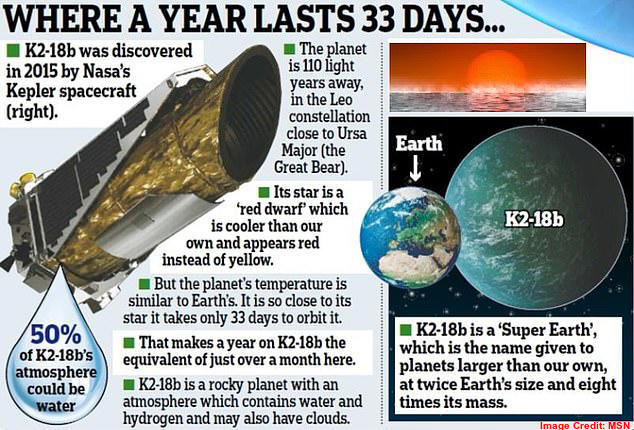 An exoplanet, called K2-18b, orbits a small and cool red dwarf star 124 light-years away from the Earth. The National Aeronautics and Space Administration (NASA), an independent agency of the US Federal Government responsible for the civil space programme, aeronautics research and space research, is constantly monitoring that distant exoplanet as it has found signs of life on it.