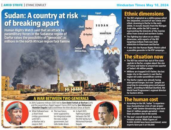 Rapid Support Forces (RSF), the paramilitary forces of Sudan, and their allied militias, recently killed “thousands of people” in West Darfur. In a report published on May 9, 2024, the Human Rights Watch (HRW) stated that the RSF committed Crimes against Humanity and Genocide between April and November 2023 mainly to eliminate the Masalit tribe and other non-Arab population. According to the New York-based international Non-Governmental Organisation (NGO) that conducts research and advocacy on Human Rights, the RSF is responsible of carrying out the worst atrocities of the ongoing Civil War in the African nation. It may be noted that the Civil War began in Sudan in April 2023.