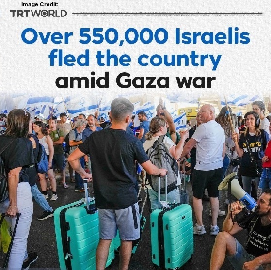 (TRT World) More than half a million Israelis left their country and did not return during the first six months of Israel’s Gaza War, the Times of Israel reported, citing the Population and Immigration Authority of the Jewish nation.